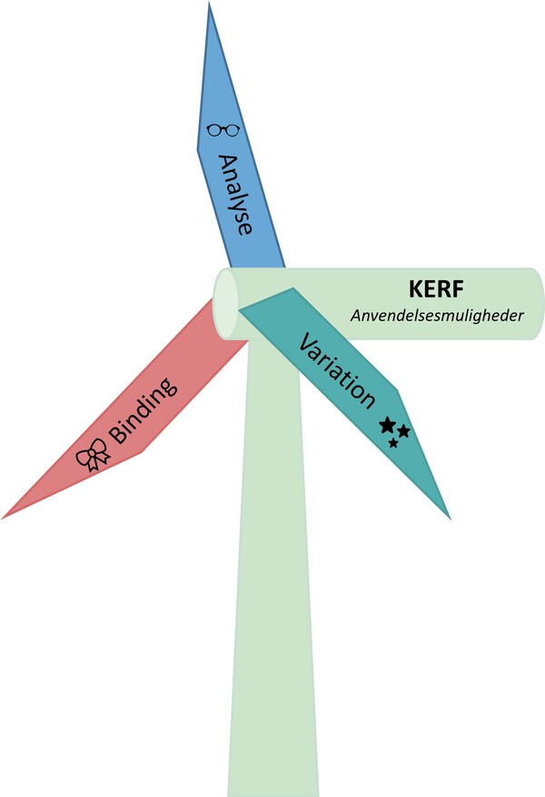 Energi, Rum og Form (KERF). Hvert element udgør et blad i firkløveret. Visualiseringen